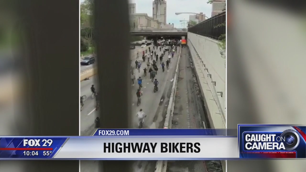 A slew of bikers were captured taking over a portion of a busy Philadelphia highway on Sunday afternoon.