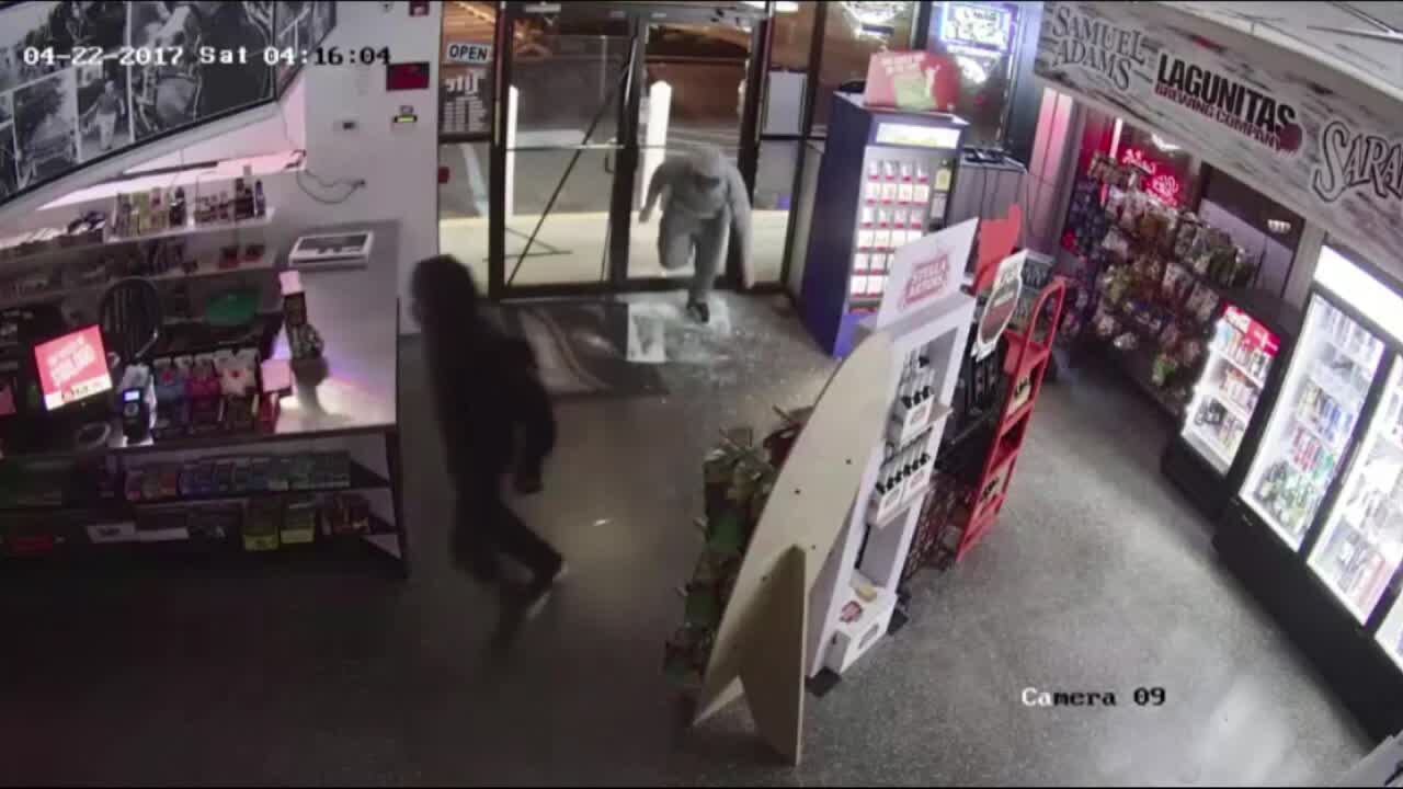 Burglars use rock to break into liquor store, then help themselves
