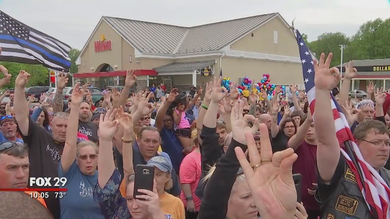 They rallied tonight in memory of Corporal Stephen Ballard, of the Delaware State Police, at the Wawa where he was gunned down last week. Cops, biker groups and every day citizens joined together to remember him.