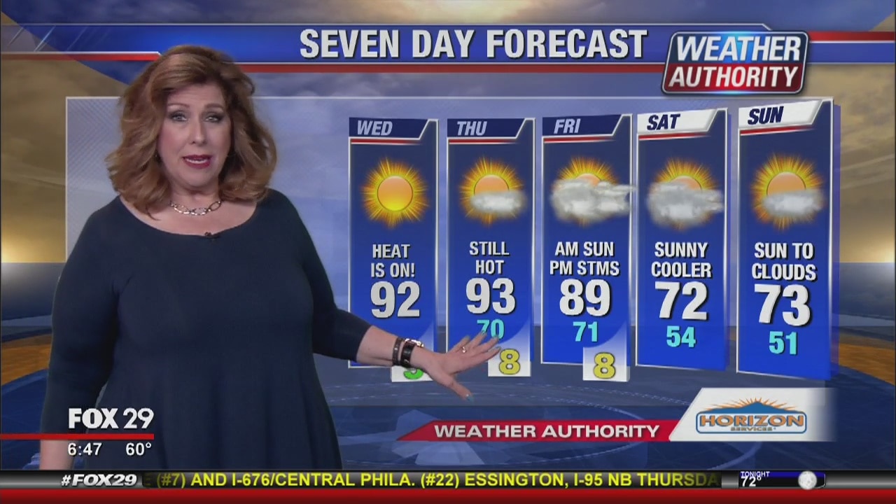 Sue Serio has the Wednesday forecast, plus no heat relief until weekend in the 7 day