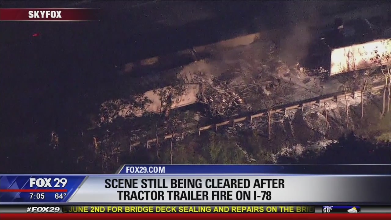 Scene still being cleared after tractor trailer fire on I-78
