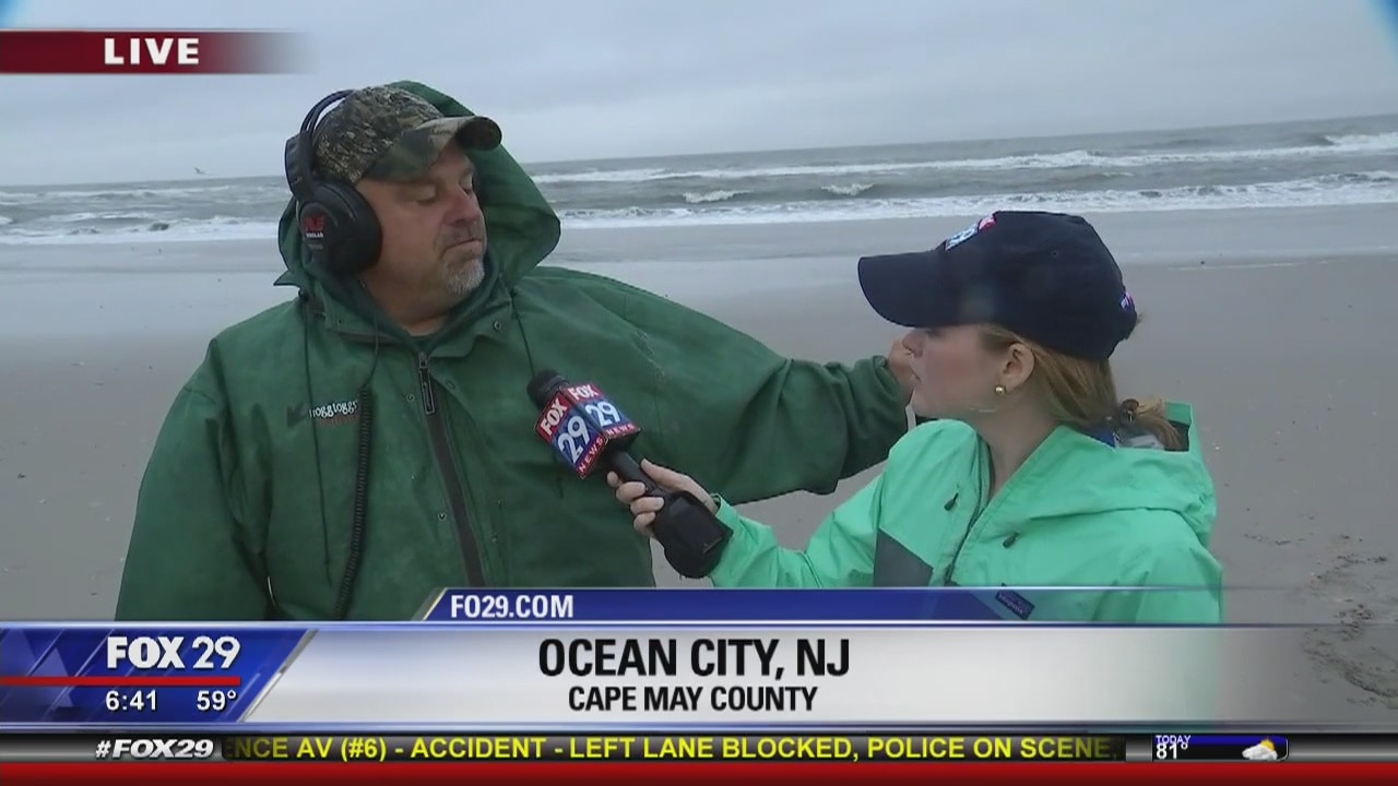 Jennifer Joyce talks to first person metal-detecting on Ocean City beach