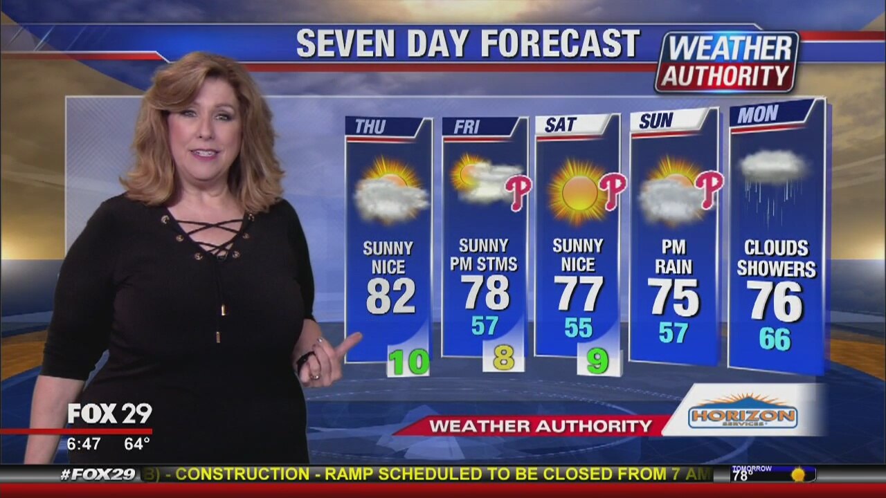 Sue Serio has the Thursday forecast, plus chances of rain after sunny Saturday in the 7 day