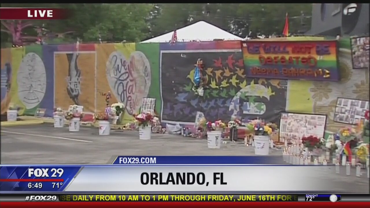 Hundreds in Orlando leaving flowers, cards, drawings at nightclub to remember the victims killed a year ago