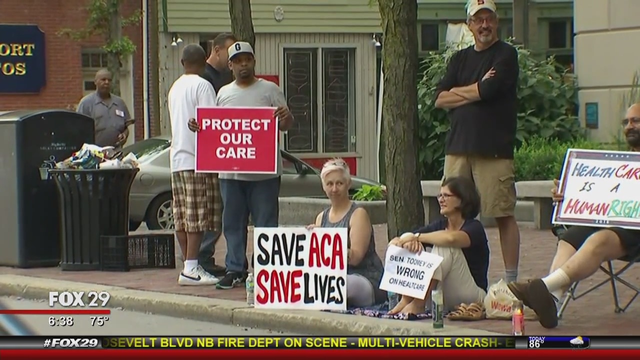 Toomey upbeat about Senate health care bill amid protests