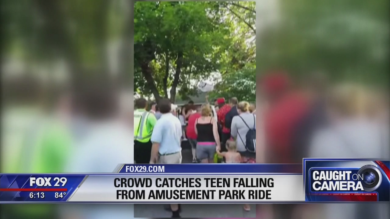 Crowd Catches Teen Falling from Amusement Park Ride