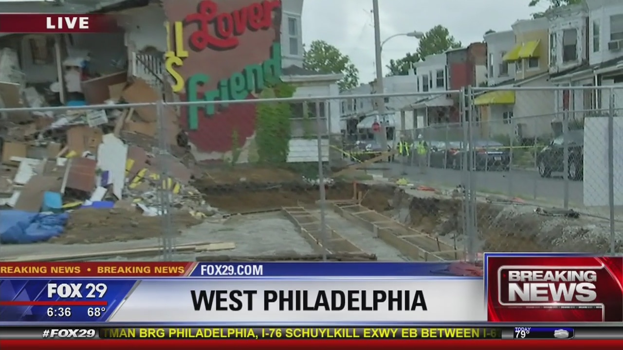 Cat alerts couple before wall of their stand-alone rowhome collapses