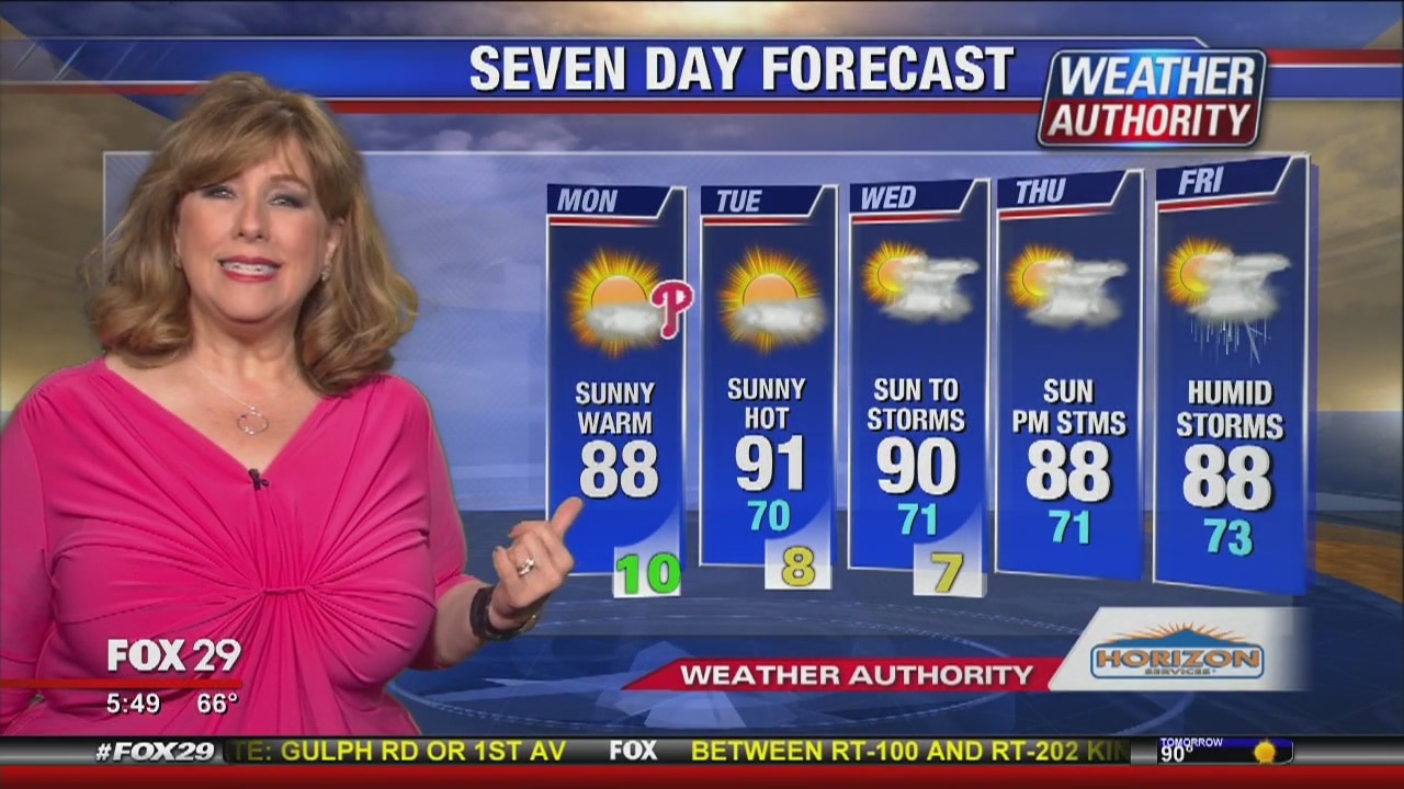 Sue Serio has the Monday forecast, plus starting the 7 day close to 90