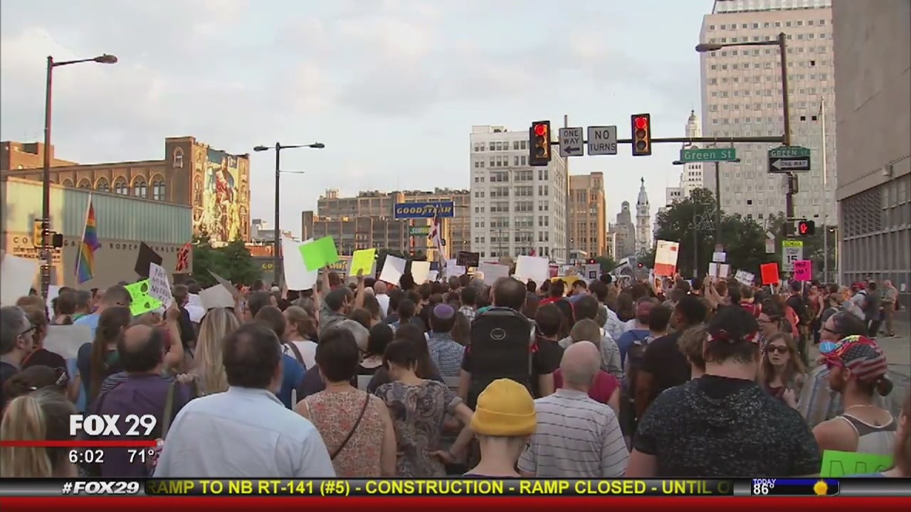 Philly marchers gather for the 'Philly is Charlottesville' march that took place Wednesday evening.