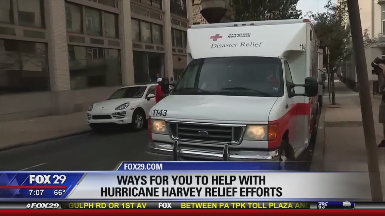 More relief workers from the American Red Cross in Center City, Philadelphia are making their way south to Texas and Louisiana Tuesday morning to help those in need as Harvey continues to dump rain on thousands of residents.