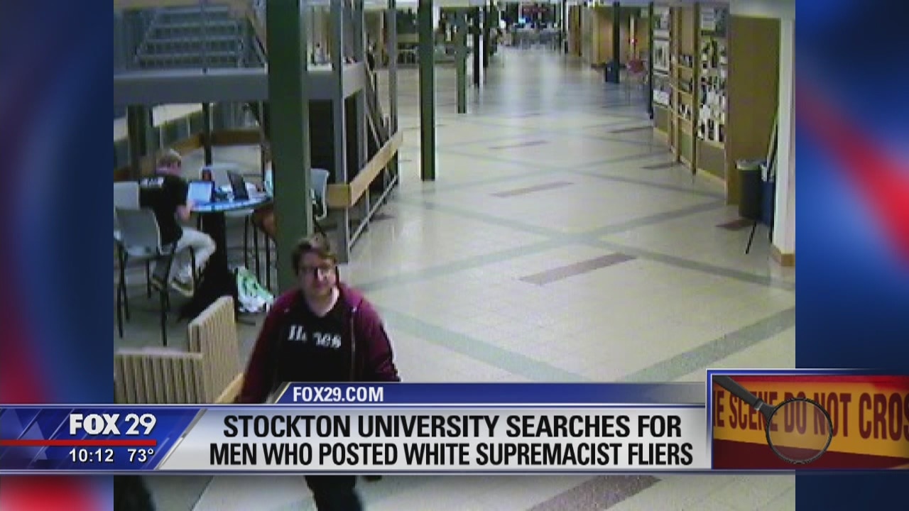 Stockton University says they are searching for the three young men responsible for posting fliers around campus promoting a white supremacist group.
