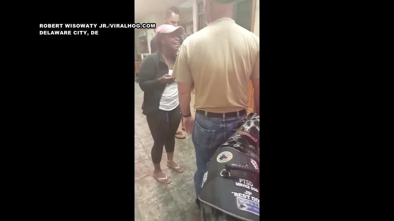 A restaurant patron in Delaware wasn’t thrilled to be eating next to a fellow patron’s service animal — and she wasn’t afraid to let him know.