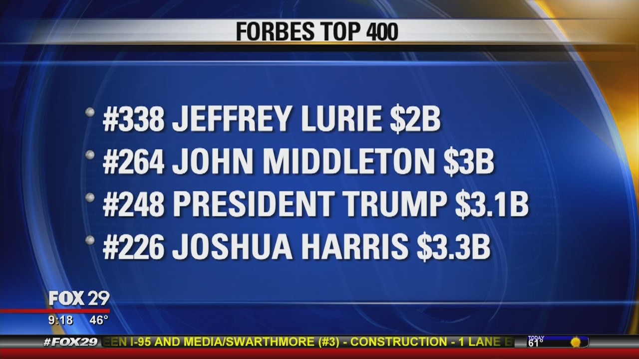 Noteworthy names include Jeffrey Lurie at #338 and President Trump at #248.