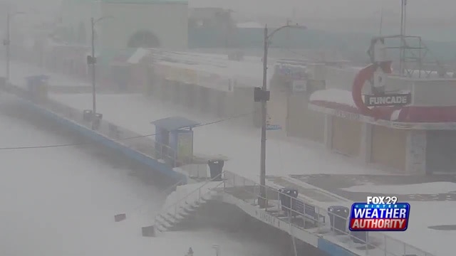 Watch a timelapse video of the "Bomb Cyclone" dropping at least a half foot of snow and then whipping it all over the Wildwood, N.J., boardwalk during this 16-hour span.