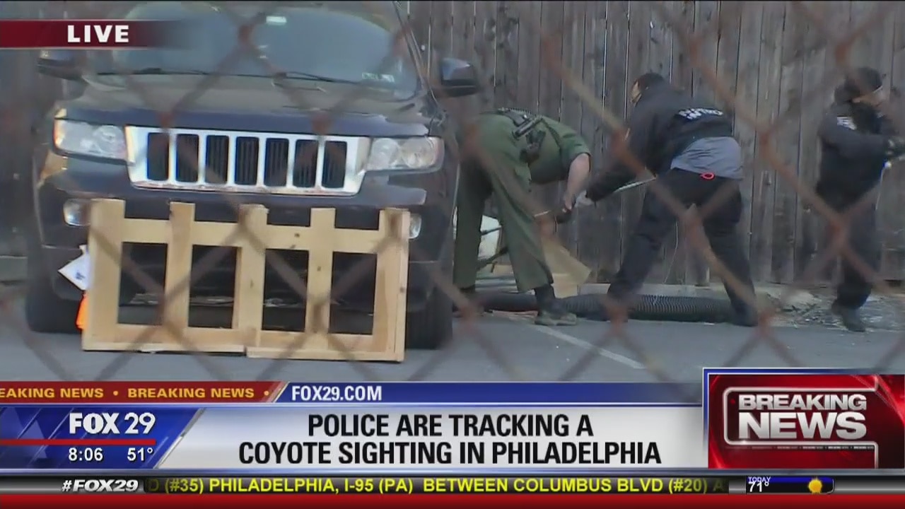 Authorities have corraled a coyote that was spotted in a parking lot in South Philadelphia early Thursday morning.
