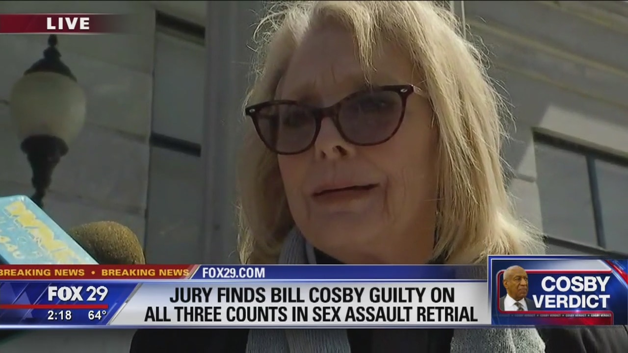 One of Bill Cosby's accusers, Victoria Valentino, was emotional when she left the Montgomery County Courthouse after learning the legendary comedian and TV star had been found guilty of indecently assaulting another woman.