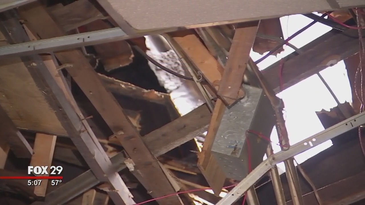 The owner of a local bar is lucky to be alive after the roof?collapsed with her inside.?