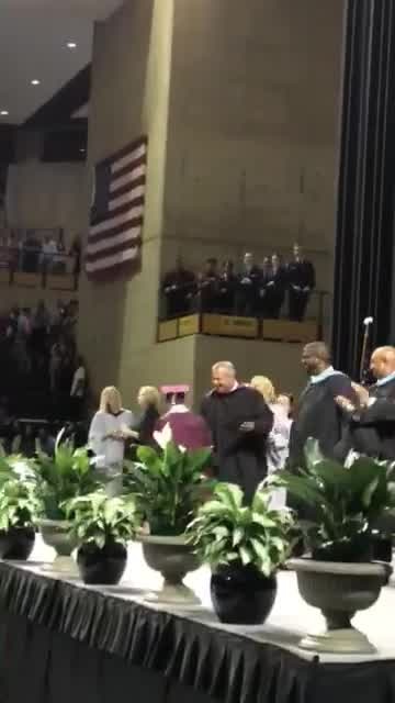 A boy graduating from high school in Midland, Texas, made sure that everyone knew just how delighted he was to receive his diploma as he jumped for joy on the podium.
