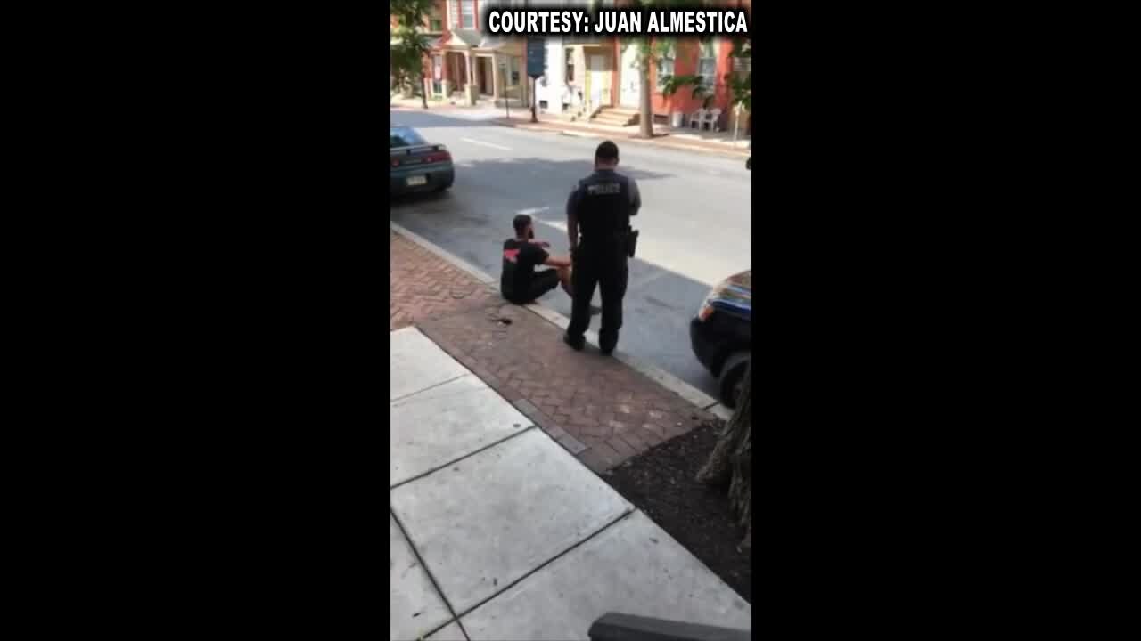 A Pennsylvania police officer is seen on video using a stun gun on a man as he's sitting on a curb.