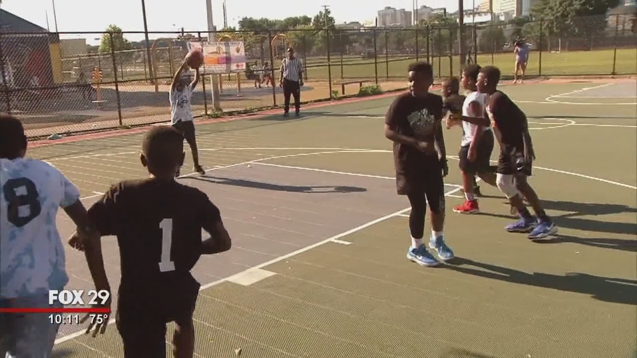 It looks like a typical day on Donald Finnegan Playground in Grays Ferry with kids on the basketball court, but this game is different.