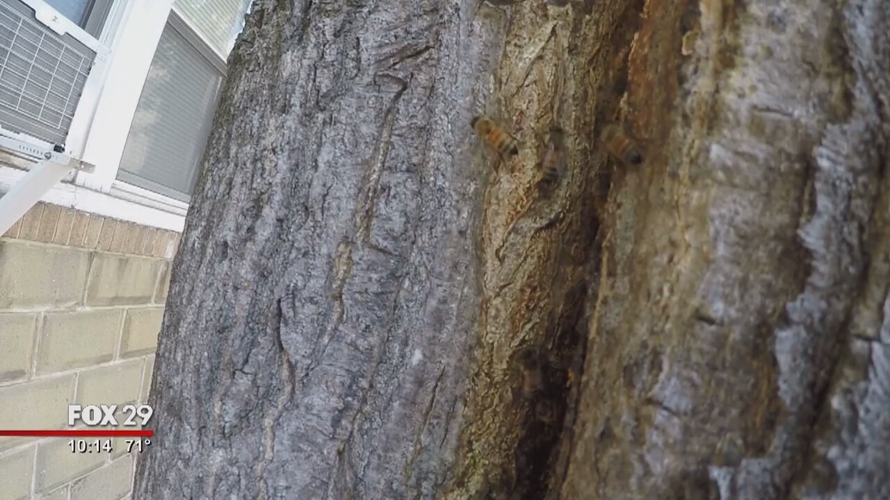 A New Jersey mother is receiving no assistance to remove this growing bee hive endangering her children.