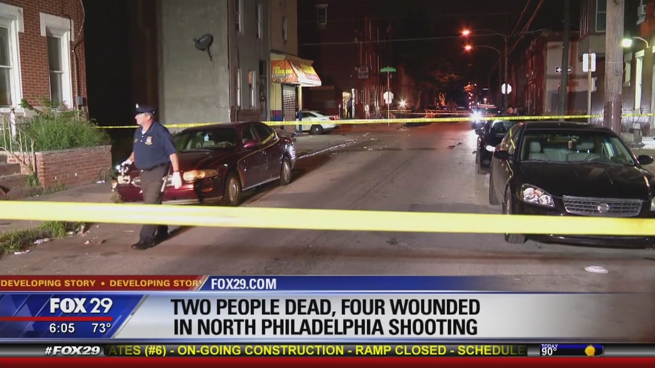 Two people dead and four wounded in a drive by shooting Wednesday night.