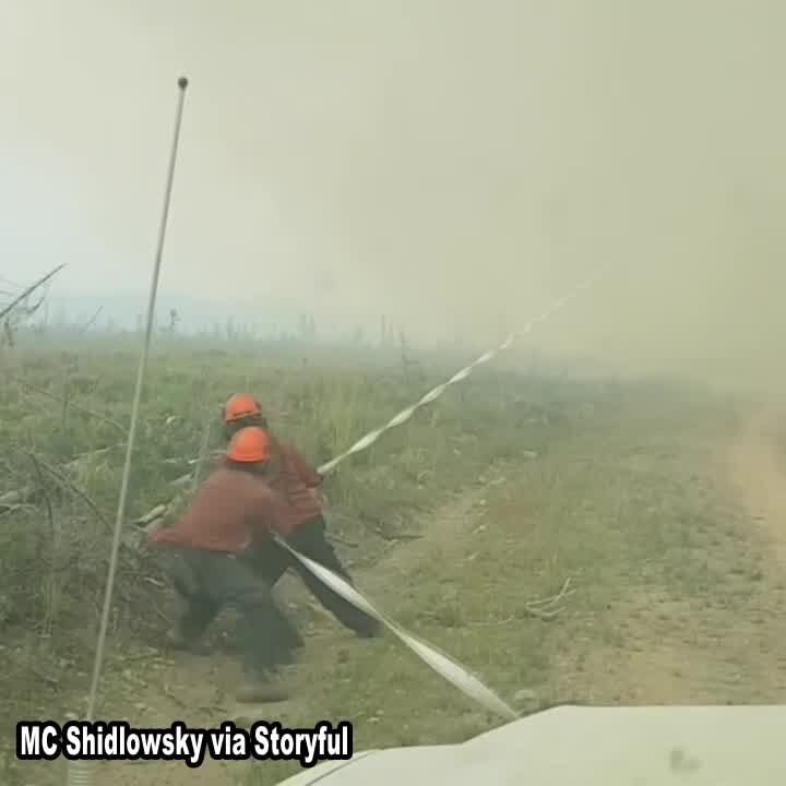 Firefighters were tackling a 'firenado' when it usurped their hose in Vanderhoof, British Columbia, last month.