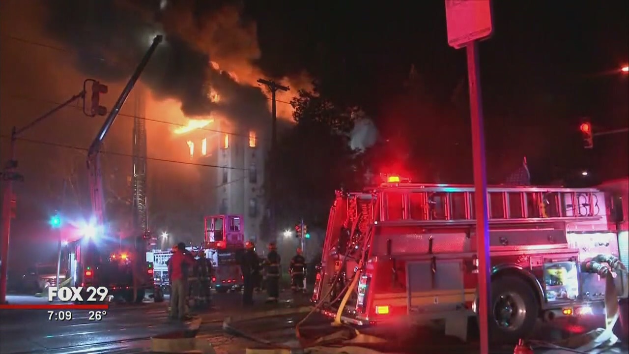 FOX 29's Lauren Johnson is live with the latest on an apartment fire that displaced 60 families and injured two firefighters in Overbrook on Monday.