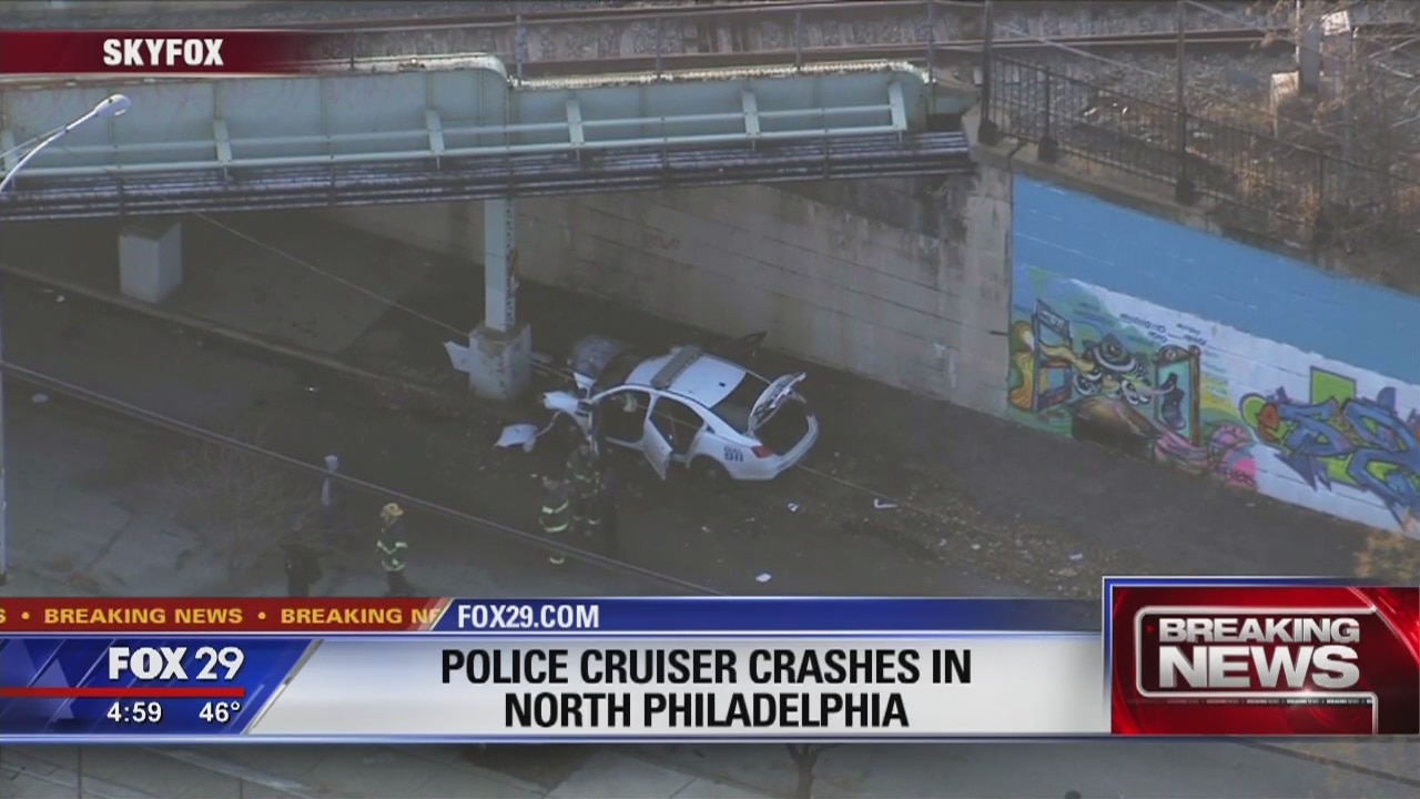 Police say an officer was injured in a crash on the 2400 block of N. 12th Street in North Philadelphia.