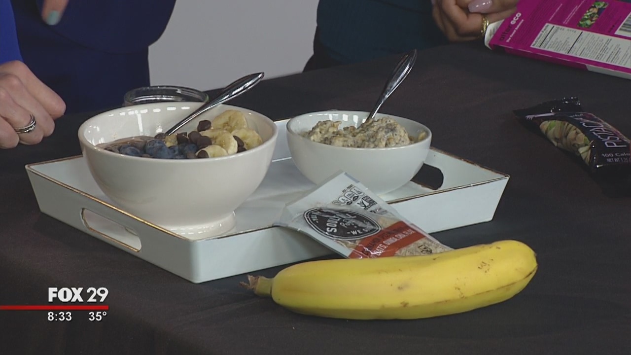 Registered dietitian Kelly Jones shows Mike and Alex some foods that will give them more energy during the day.