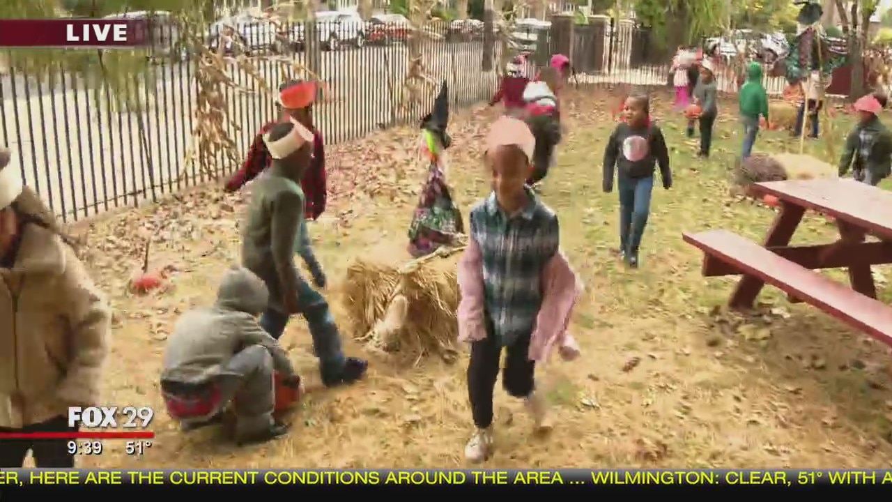 Bob Kelly is at Philadelphia Charter School of Arts and Sciences in Frankford where a school worker set up a pumpkin patch for the students.