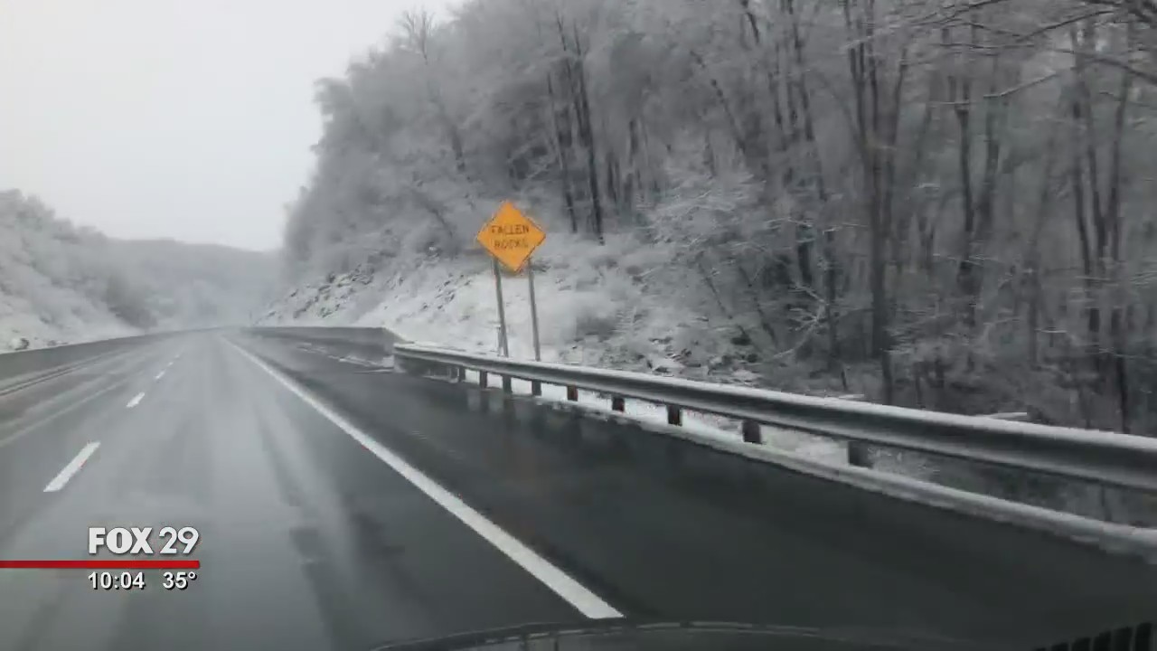 FOX 29's Chris O'Connell was on the move Monday as the area first its first snowfall of the season.