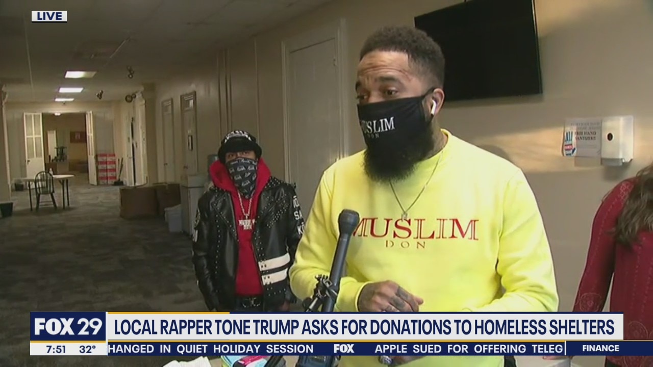 Local rapper Tone Trump asks for donations of socks to help with homeless shelters.