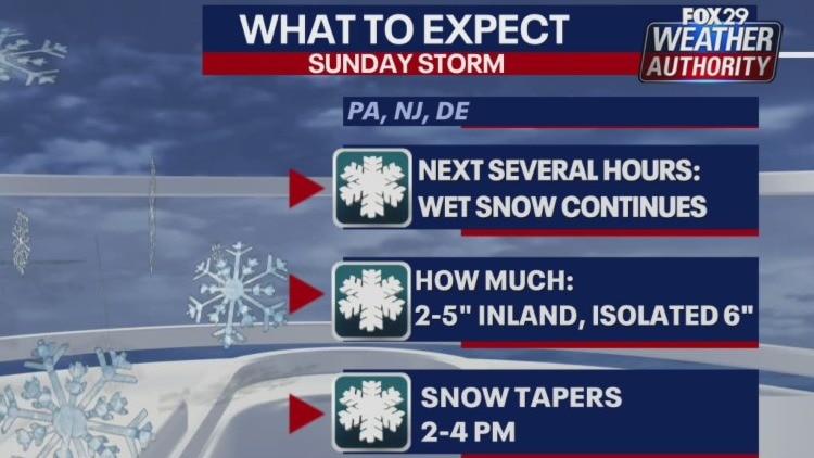 FOX 29's Scott Williams has the latest forecast as snow and rain continued to fall across the area into the afternoon Sunday.