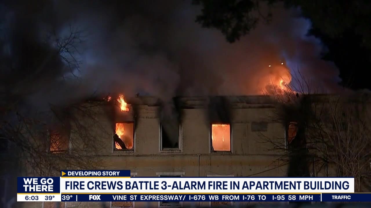 Firefighters battle 3-alarm blaze at rundown apartment building in Camden