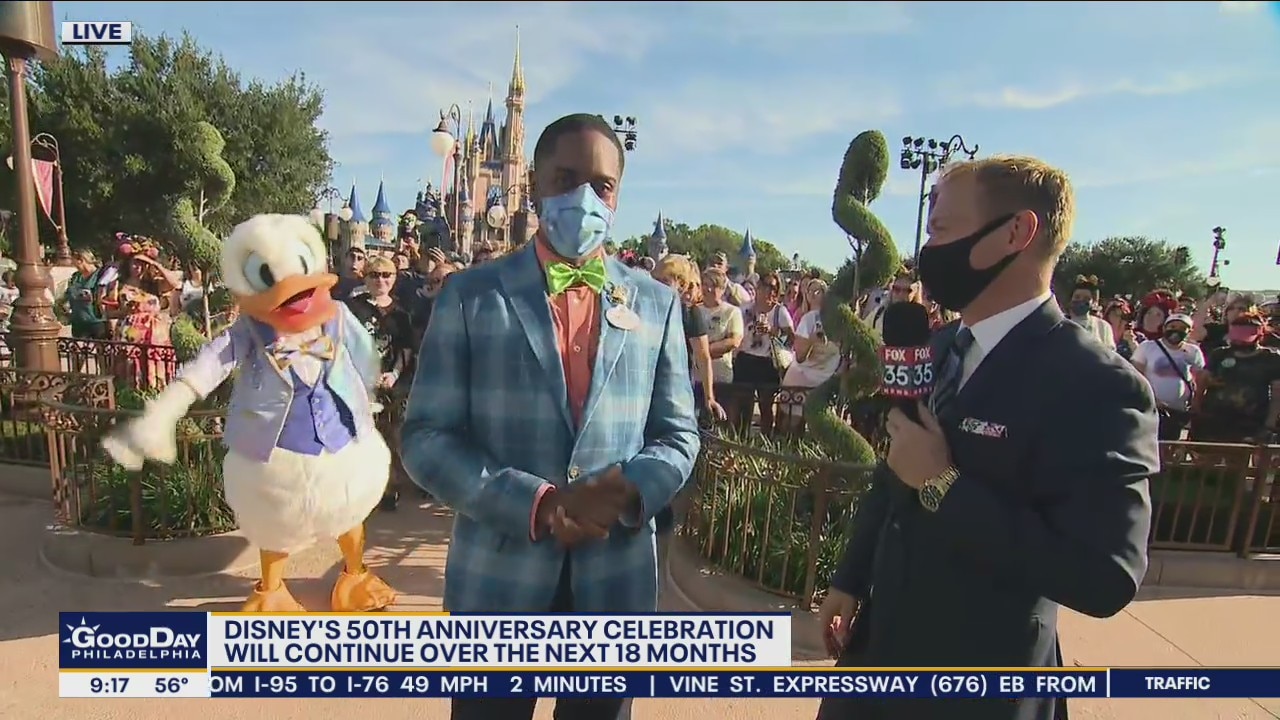FOX 29's Karen Hepp, Thomas Drayton and Mike Jerrick catch up FOX 35 Orlando's David Martin as he gets a preview of Walt Disney World's 50th anniversary celebration that last for the next 18 months.
