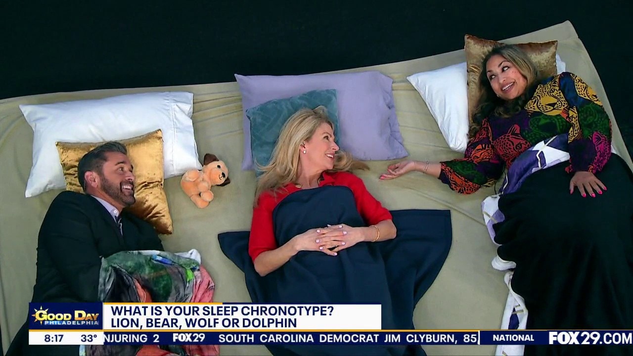 Fox 29's Karen Hepp and Jason Martinez chat with double board-certified sleep medicine specialist Dr. Thanuja Hamilton, MD, about sleep chronotypes while comfy in bed.