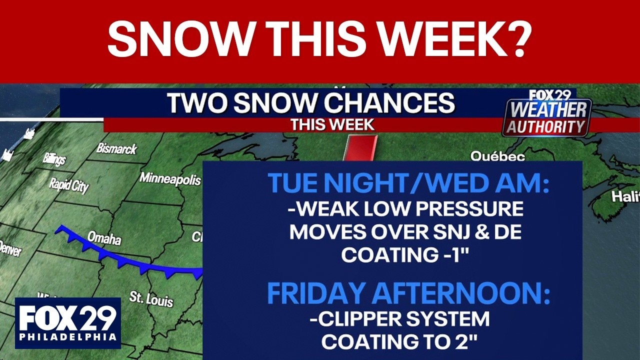 FOX 29 meteorologists Scott Williams and Kathy Orr discuss two potential snow showers later in the week.
