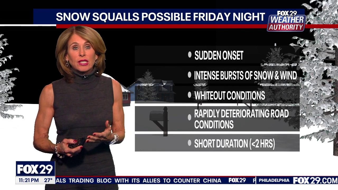 FOX 29 Meteorologist Kathy Orr breaks down the possible snow squalls to expect this week.
