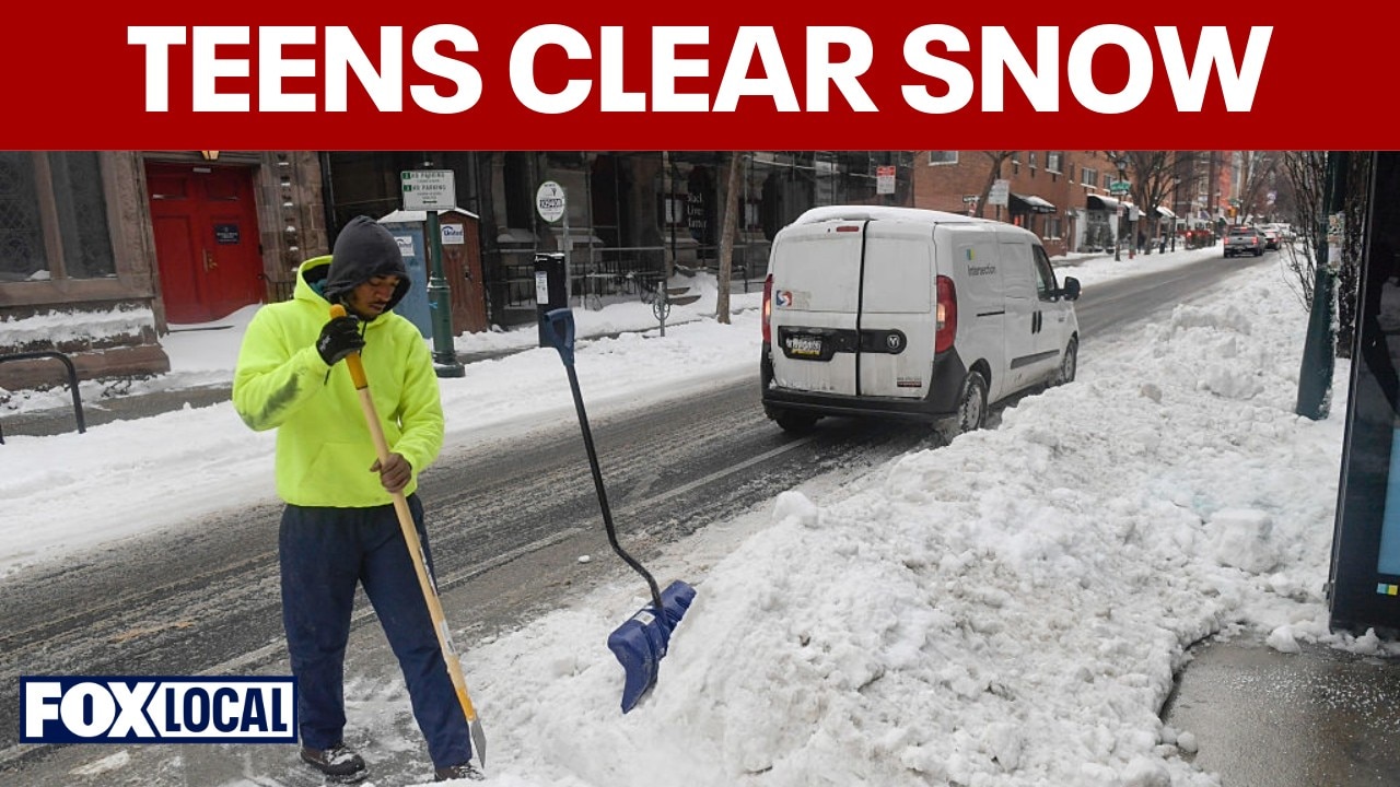 Philadelphia teens volunteer to clear ice-packed West Philly street