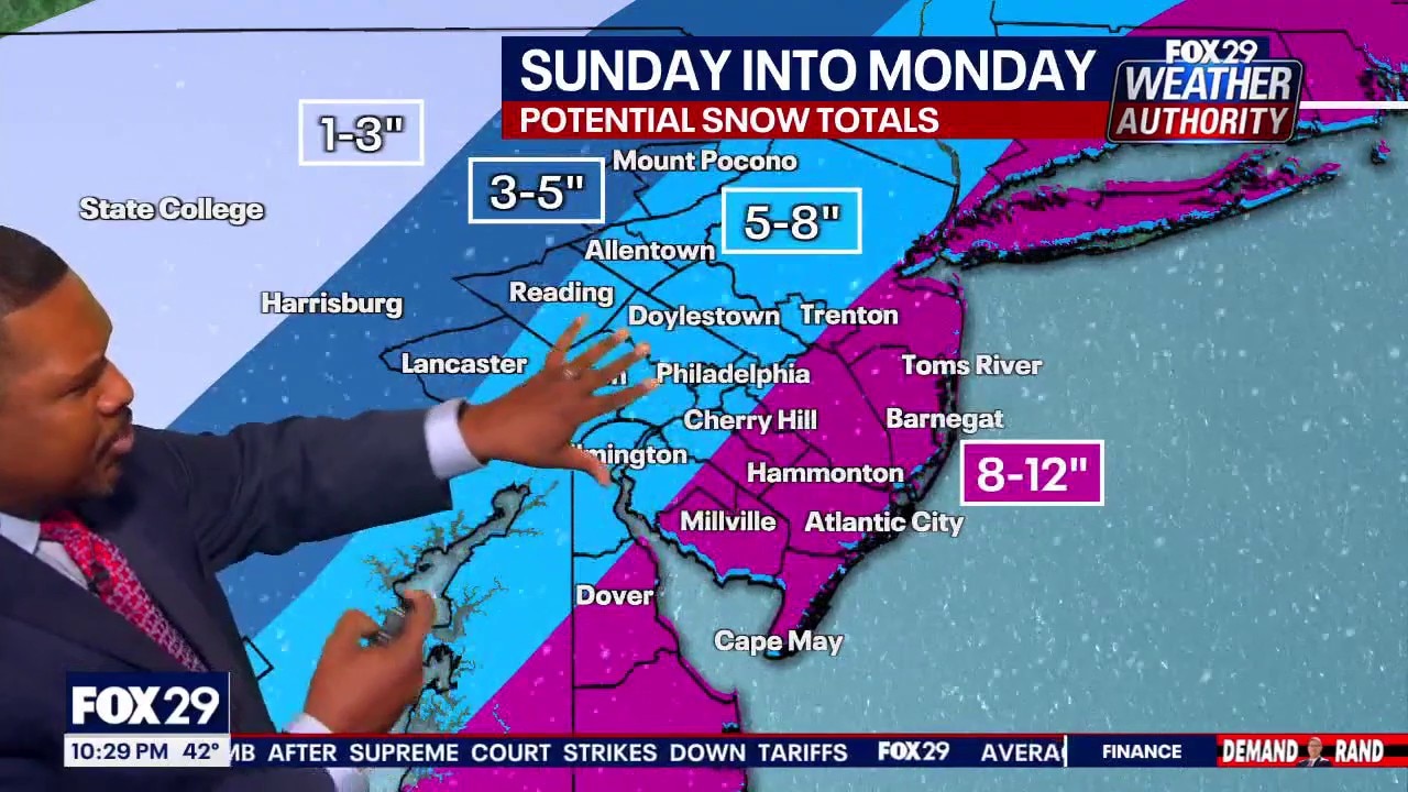 FOX 29 Meteorologist Scott Williams details possible snow totals for this upcoming Sunday's wet and heavy snow storm.