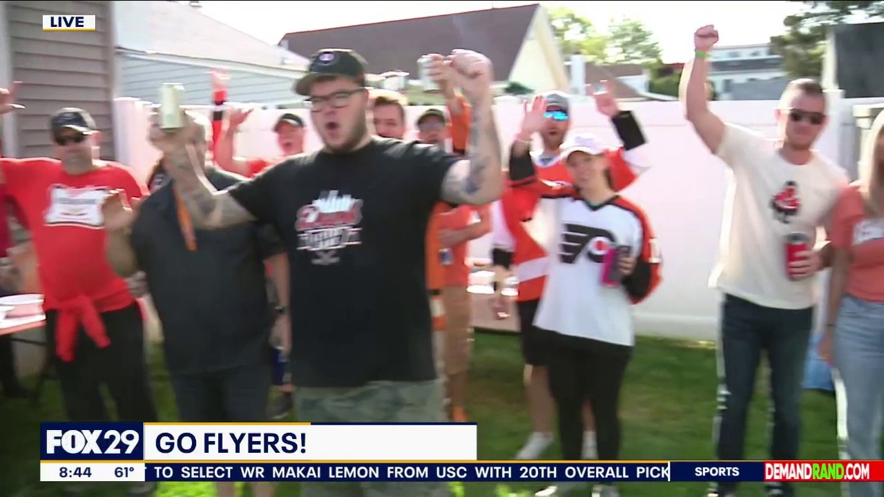 Fox 29's Jenn Frederick attends a flyers party in Northeast Philly.