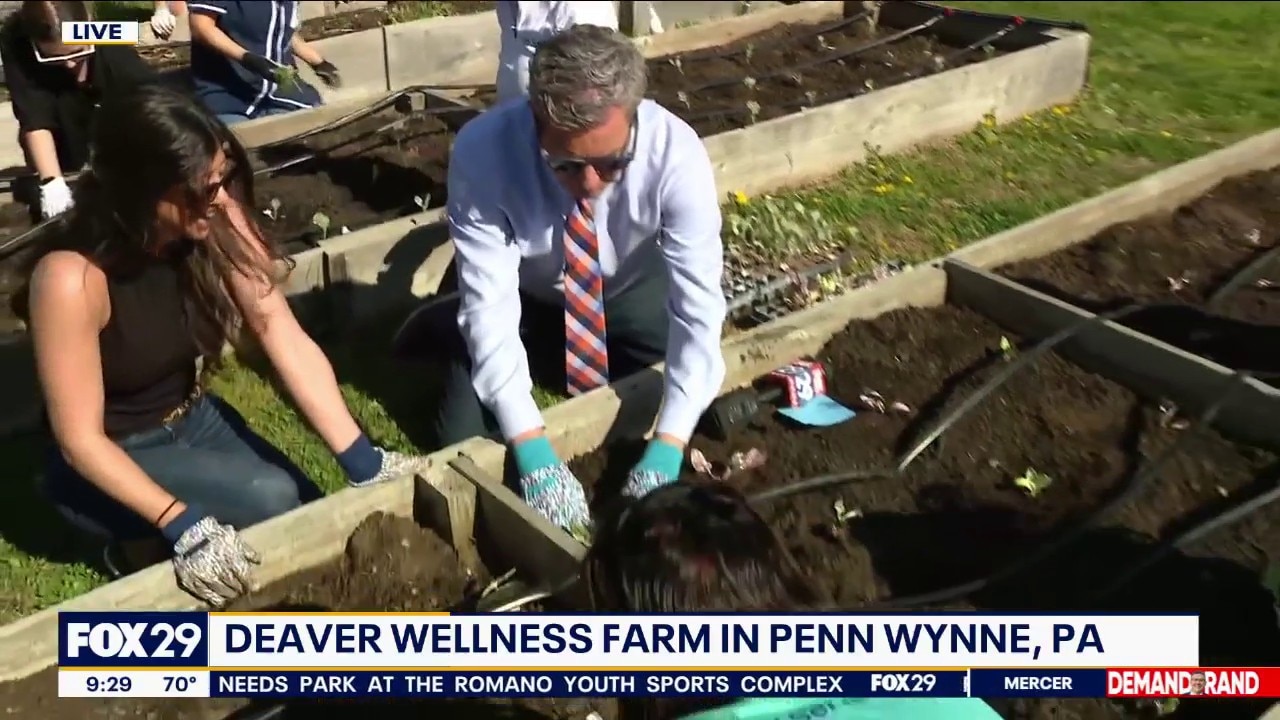 Fox 29's Bob Kelly helps in the garden at Deaver Wellness Farm in Penn Wynne, PA.