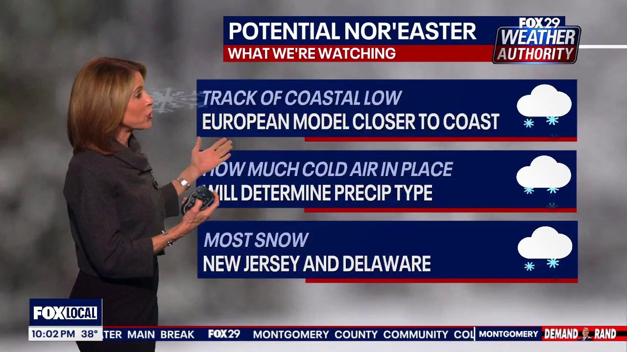 FOX 29 Meteorologist Kathy Orr details what to expect with a possible nor'easter on the way.