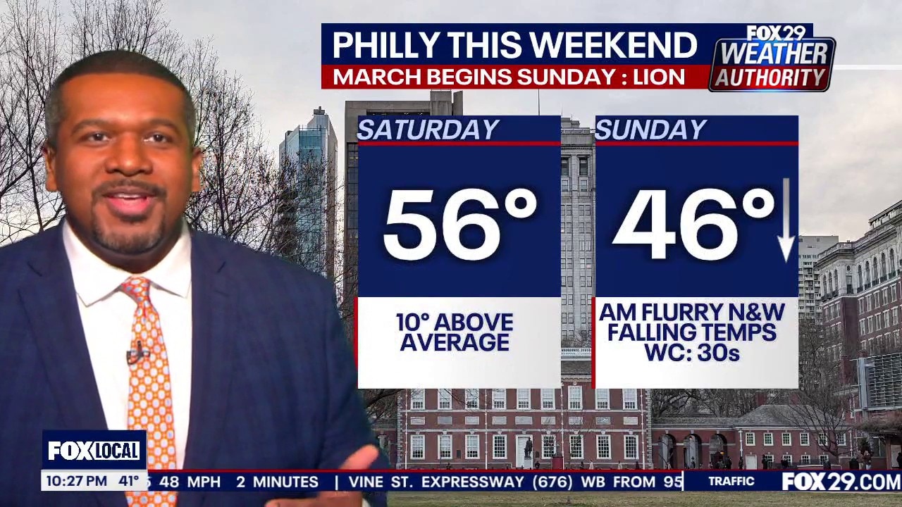 FOX 29 Meteorologist Scott Williams details the higher temperatures and snow flurries coming to the area this weekend.
