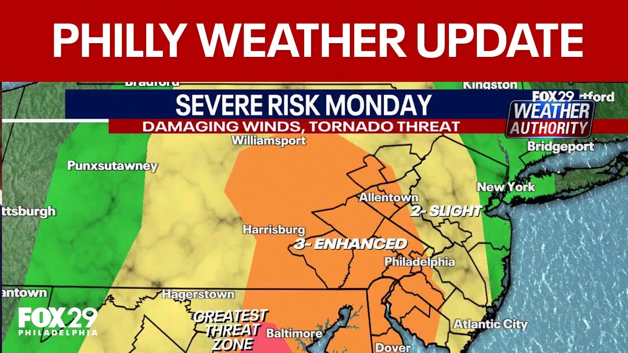 Philly weather update: Tornado threat, damaging winds and severe risks Monday