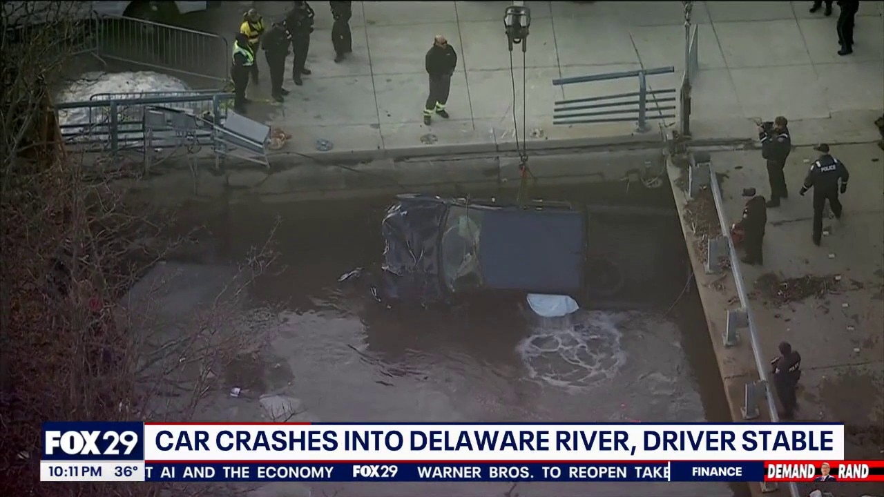 A 47-year-old man was hospitalized after police say he crashed his truck through metal barriers and into the Delaware River on Tuesday afternoon.