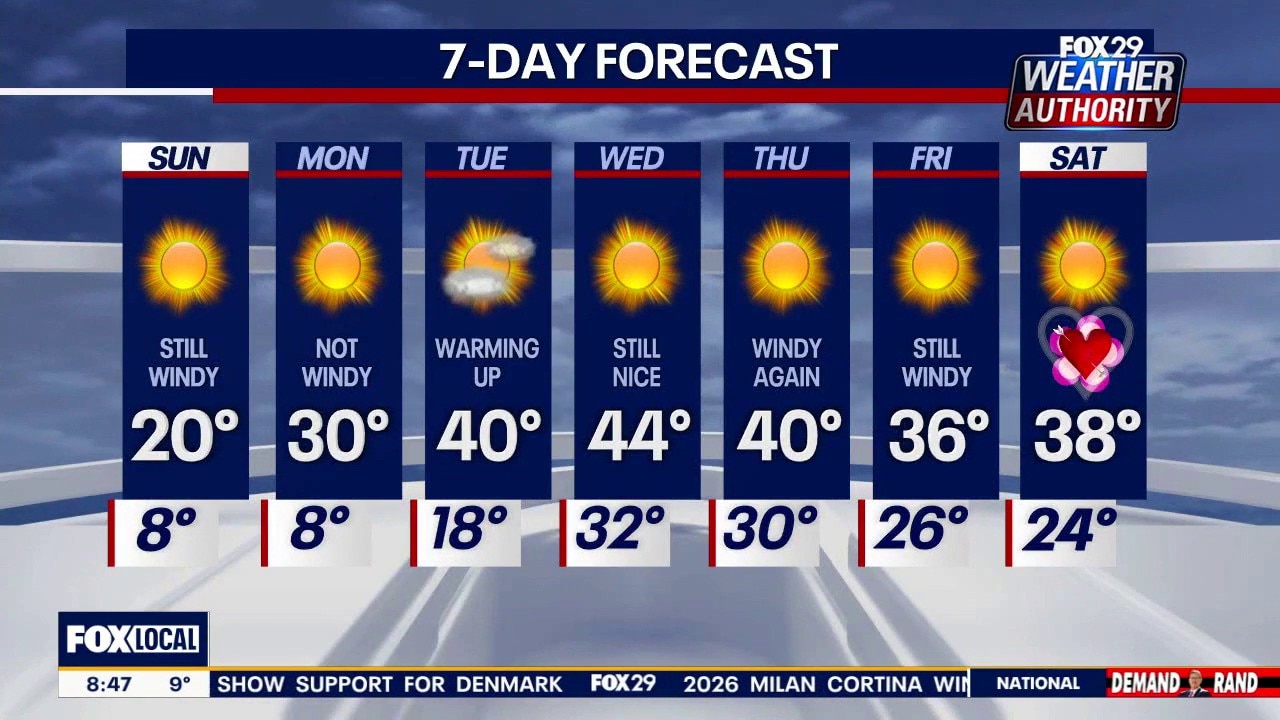 Philadelphia ends the weekend with more freezing temperatures before a slight warm-up this week.