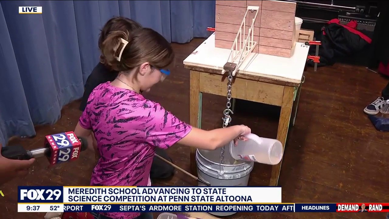 Fox 29's Greg Payne sees the Meredith Elementary School Science Olympiad team at work as they prepare to compete in the state science competition.