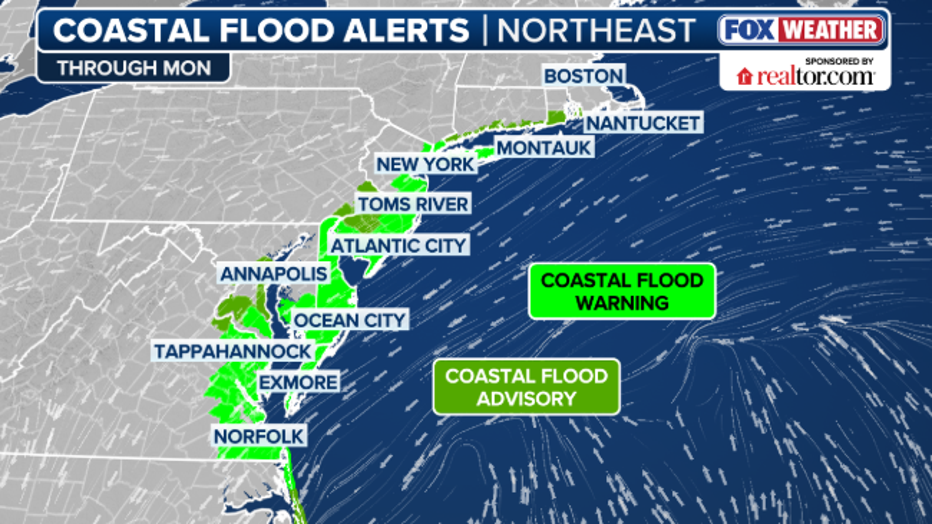 Rain is expected to fall steadily from Sunday through Monday, with coastal zones possibly seeing 1.5 to 3 inches. Inland areas may get somewhat less. While flash flooding from rainfall alone is not the primary concern, rain will exacerbate tidal flooding in low-lying and poorly drained areas.
